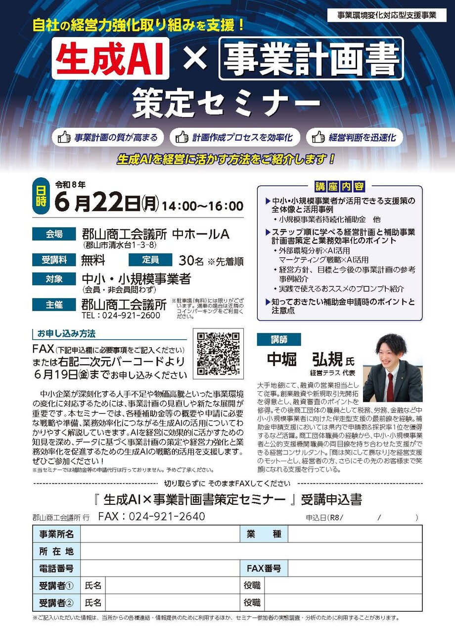 中小企業が深刻化する人手不足や物価高騰といった事業環境の変化に対応するためには、事業計画の見直しや新たな展開が重要です。本セミナーでは、各種補助金等の概要や申請に必要な戦略や準備、業務効率化につながる生成AIの活用についてわかりやすく解説していきます。AIを経営に効果的に活かすための知見を深め、データに基づく事業計画の策定や経営力強化と業務効率化を促進するための生成AIの戦略的活用を支援します。ぜひご参加ください!