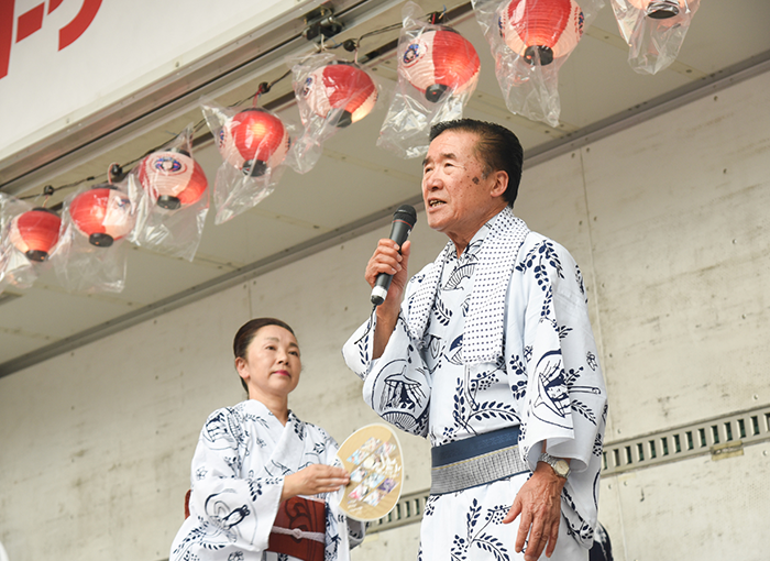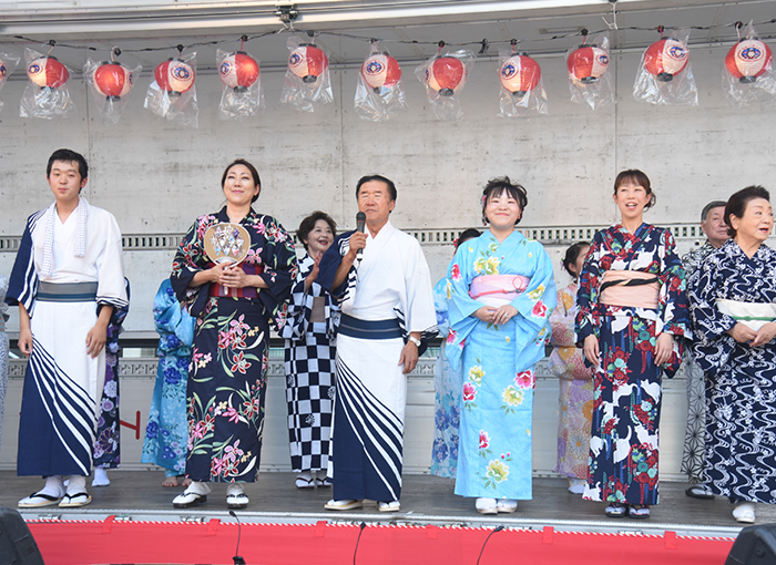 うねめ踊り流しのバックに流れる「うねめ音頭」。まつり当日は、歌い手の皆さんが特設ステージ上で歌う生歌をバックに踊り流しが行われます。