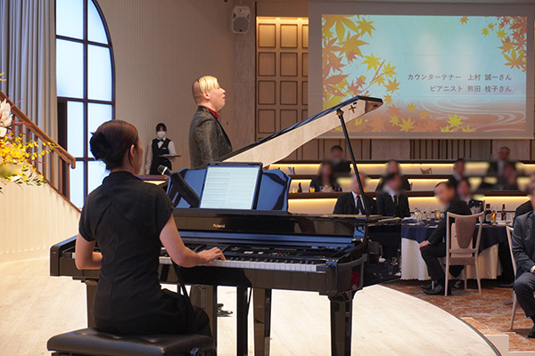 その後のパーティでは、会食をしながら生演奏を楽しみ、和やかな時間を過ごしました。